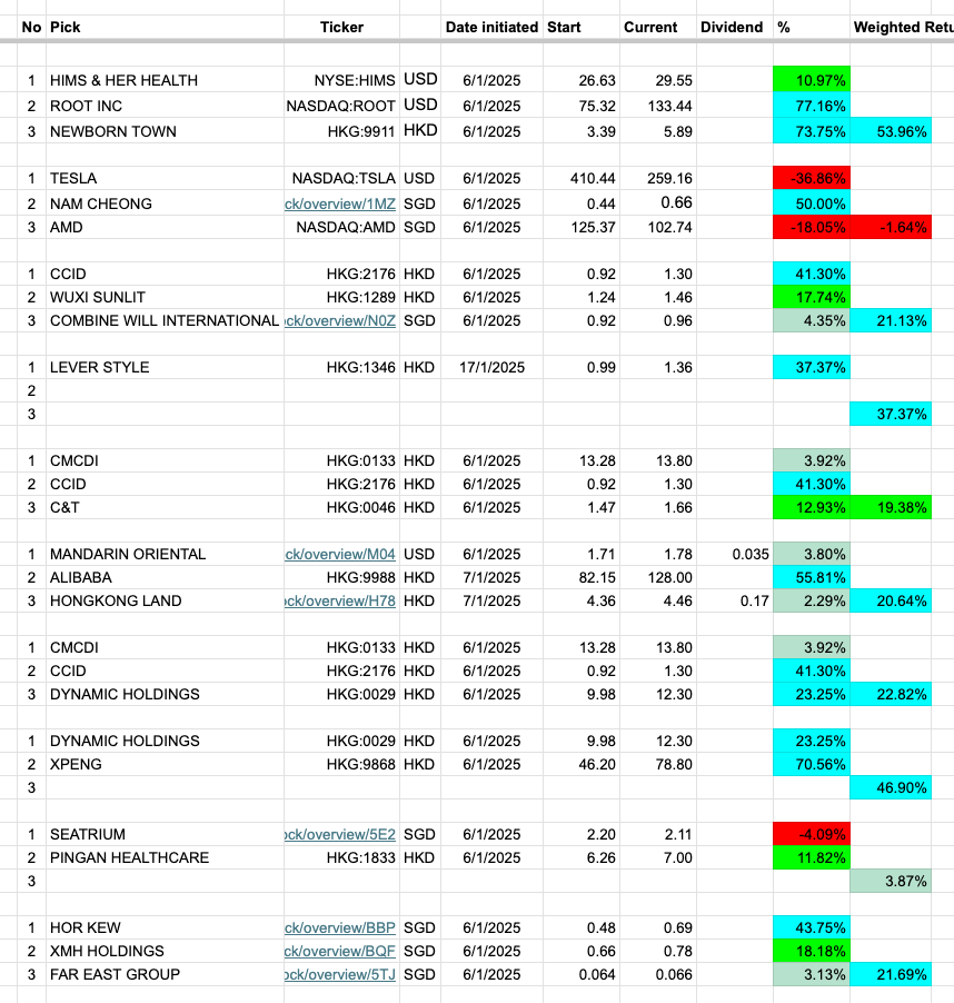 HP and I decided to host the next round of contest (Jan - Mar 2025) with the reward of going to an even more atas2 restaurant. This time, the stock pick is supposed to consist of 1-3 stock with the highest weighted returns by the end March 2025.