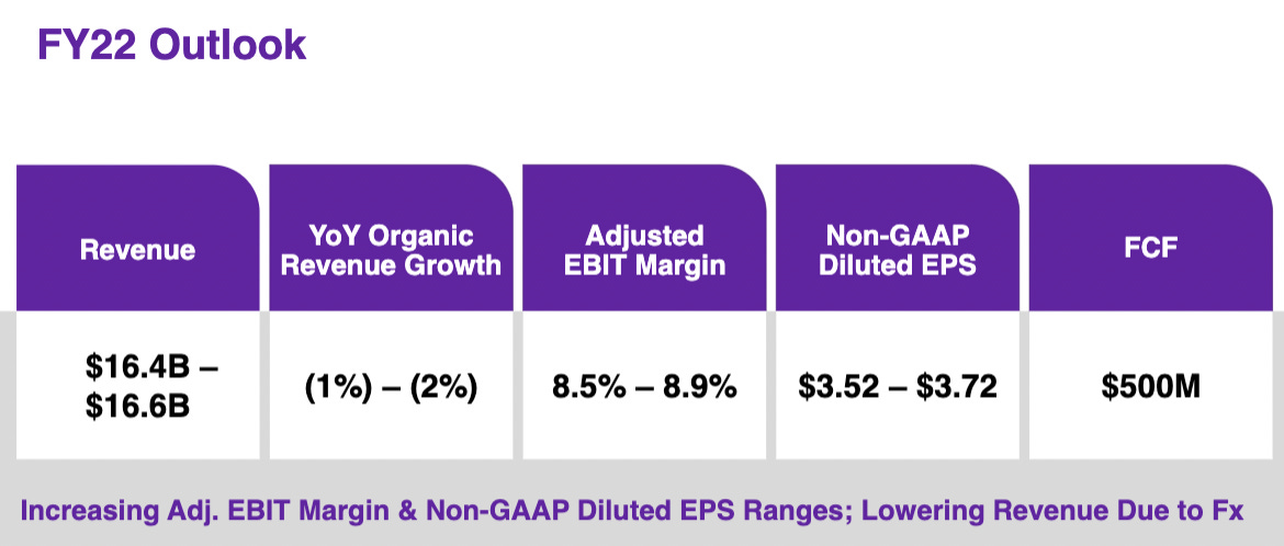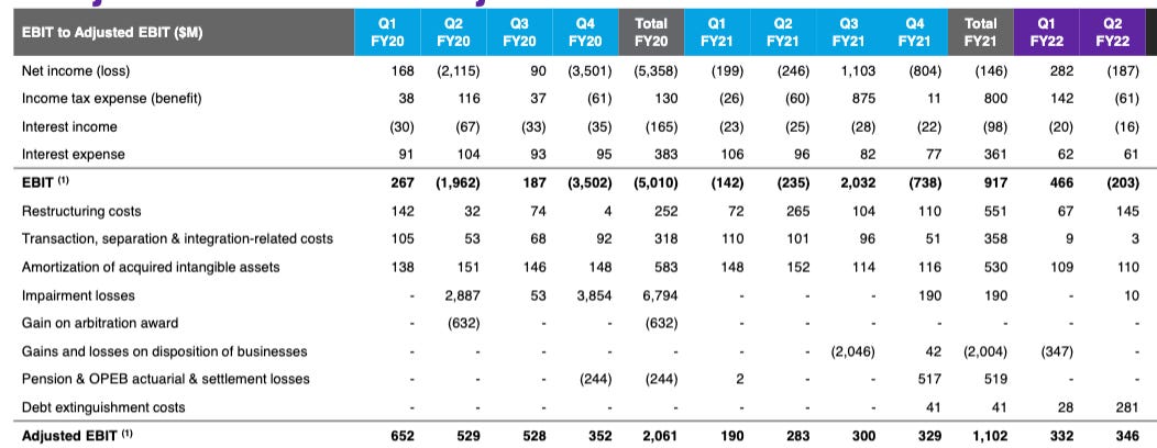 Adjusted EBIT would have amounted to around USD346m for FY22 Q2. DXC should comfortably be hitting EBIT of more than USD1,000m for FY22.